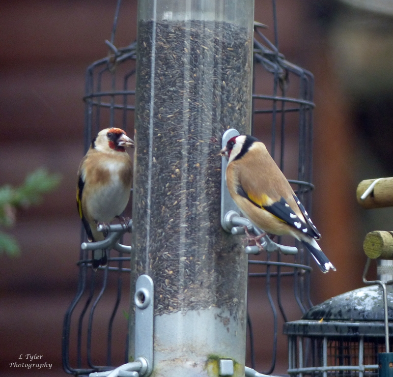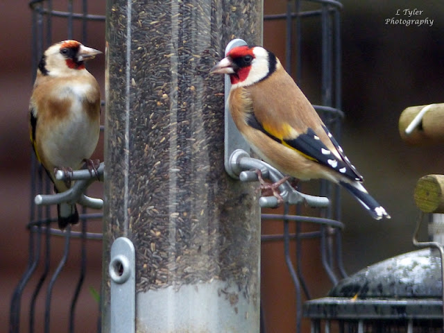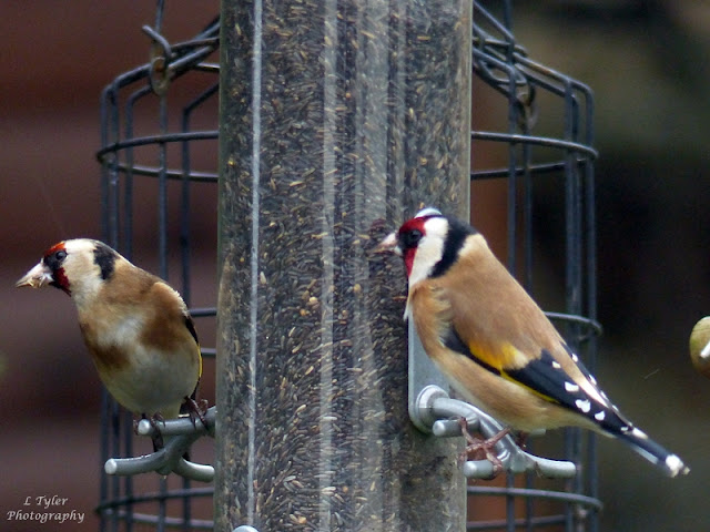 Glancing out our rather dirty patio window today I was delighted to see a couple of beautiful Gold Finches visiting the bird feeders again.  The murky wet and damp weather must have brought them in.